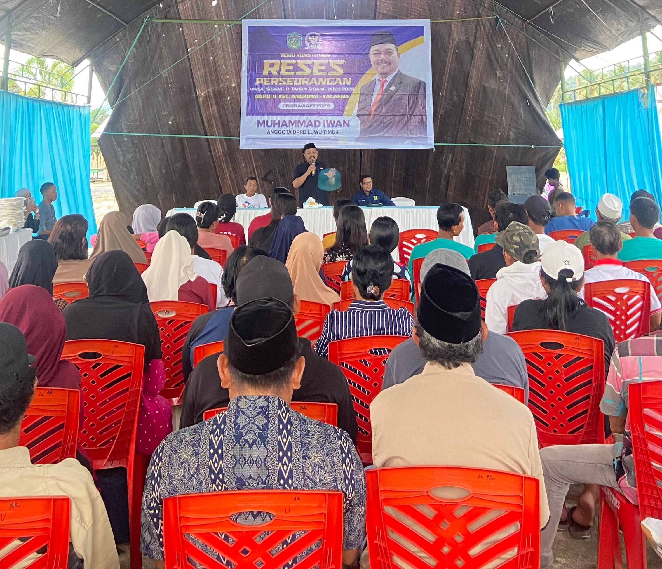 Luwu Timur, SwarnasAktual.Id-Anggota DPRD Luwu Timur dari Fraksi Nasdem, Muhammad Iwan menggelar reses perseorangan masa sidang II tahun sidang 2025/2026, di kecamatan Angkona, kabupaten Luwu Timur, dihadiri warga desa Wana Sari dan warga desa Balirejo, kecamatan Angkona Jum’at (6/3/2026).